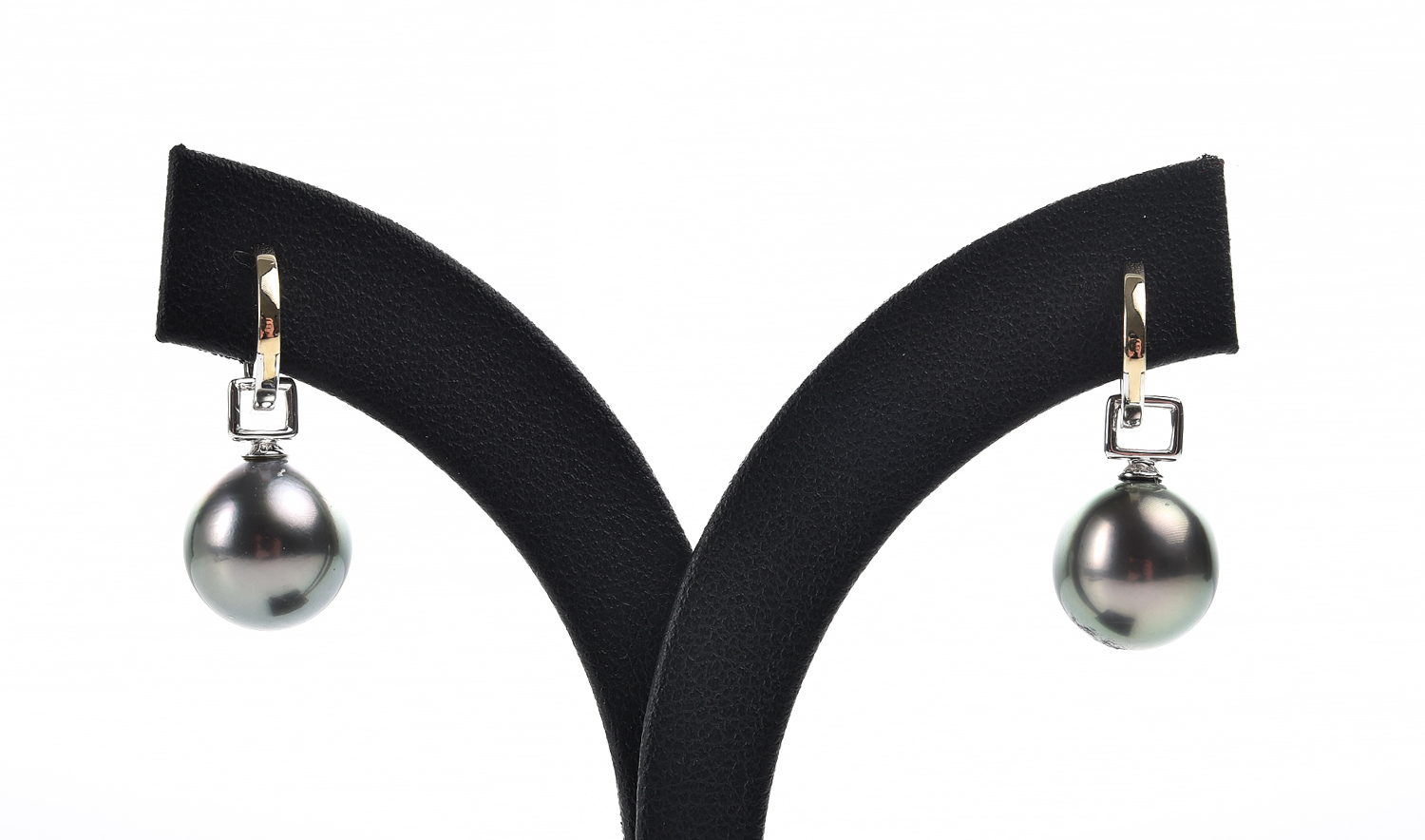 A PAIR OF TAHITIAN PEARL EARRINGS (11.4MM TO 11.6MM) TO HINGED HOOP FITTINGS IN 9CT GOLD