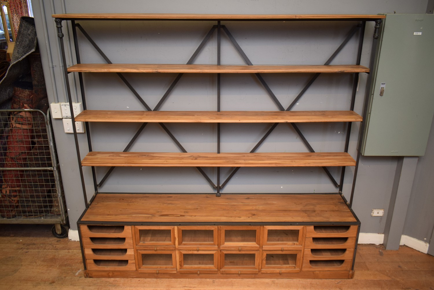 A SUBSTANTIAL INDUSTRIAL BOOKCASE (195H X 218W X 50D CM) (PLEASE NOTE THIS HEAVY ITEM MUST BE REMOVED BY CLIENTS OR CARRIERS AT THE CUSTOMERS EXPENSE. LEONARD JOEL STAFF CANNOT ASSIST CARRYING THIS ITEM)
