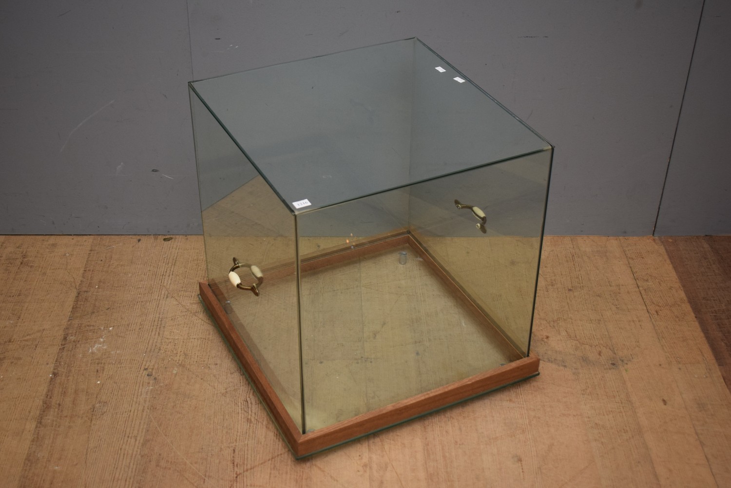 A TIMBER AND GLASS DISPLAY BOX (A/F) (56H X 54W X 54D CM)