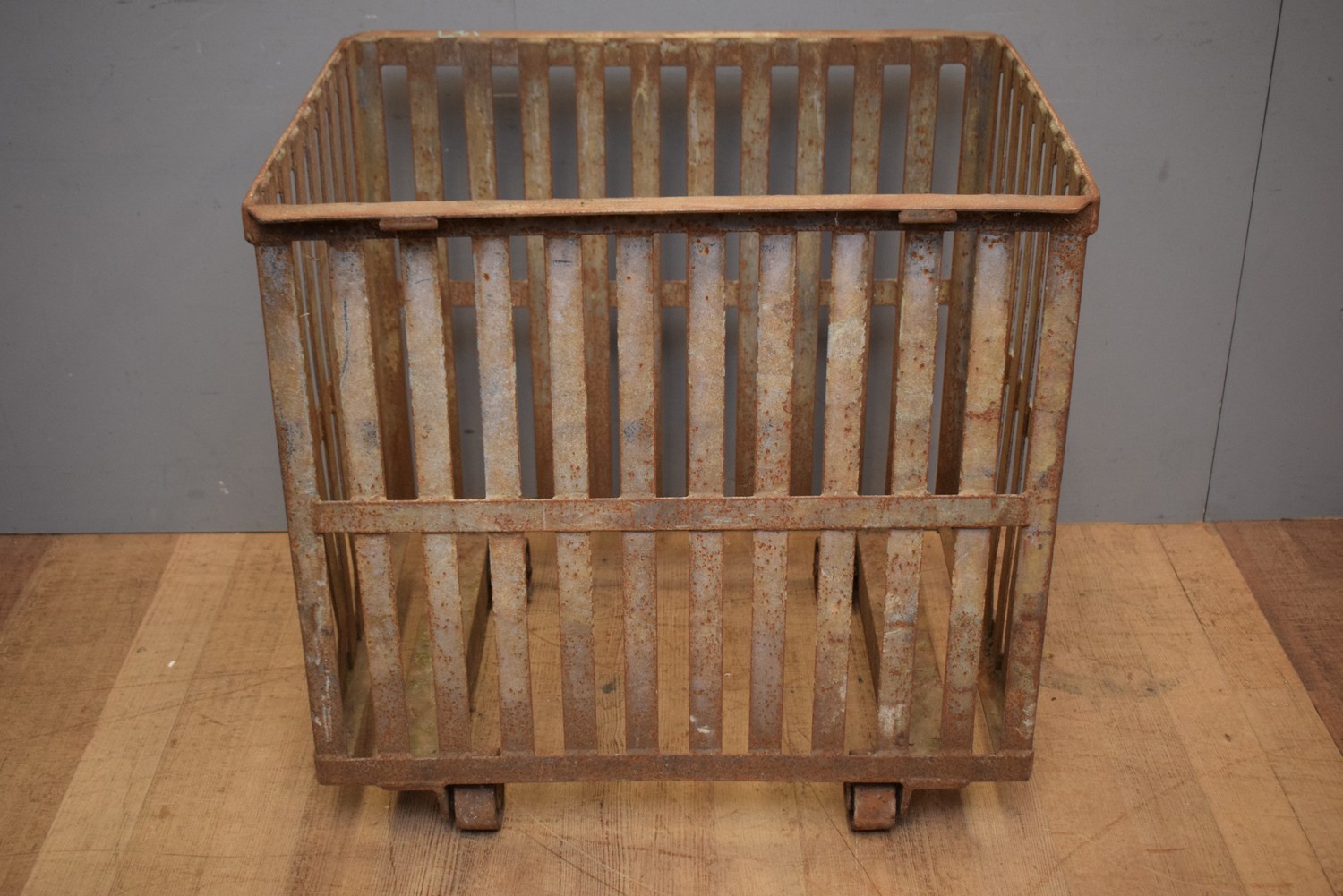 AN INDUSTRIAL STEEL TROLLEY WITH REMOVABLE PERFORATED STEEL BASE (87H X 91W X 71D CM)
