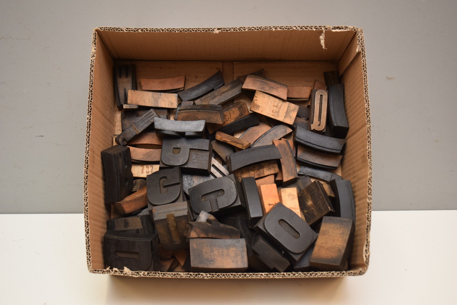 A BOX LOT OF WOODEN PRINTER'S LETTERS