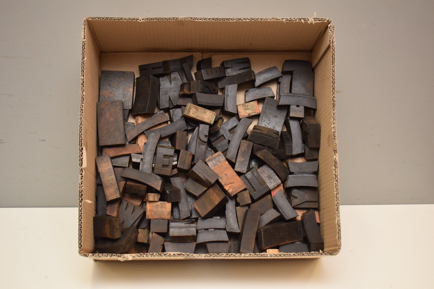 A BOX LOT OF WOODEN PRINTER'S LETTERS