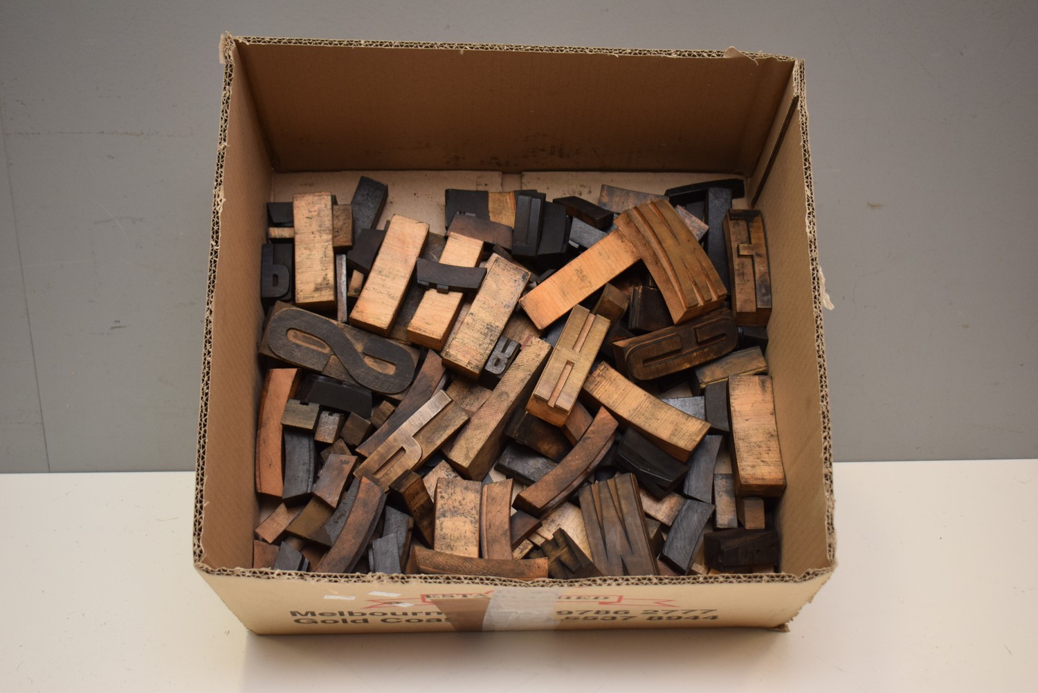 A BOX LOT OF WOODEN PRINTER'S LETTERS