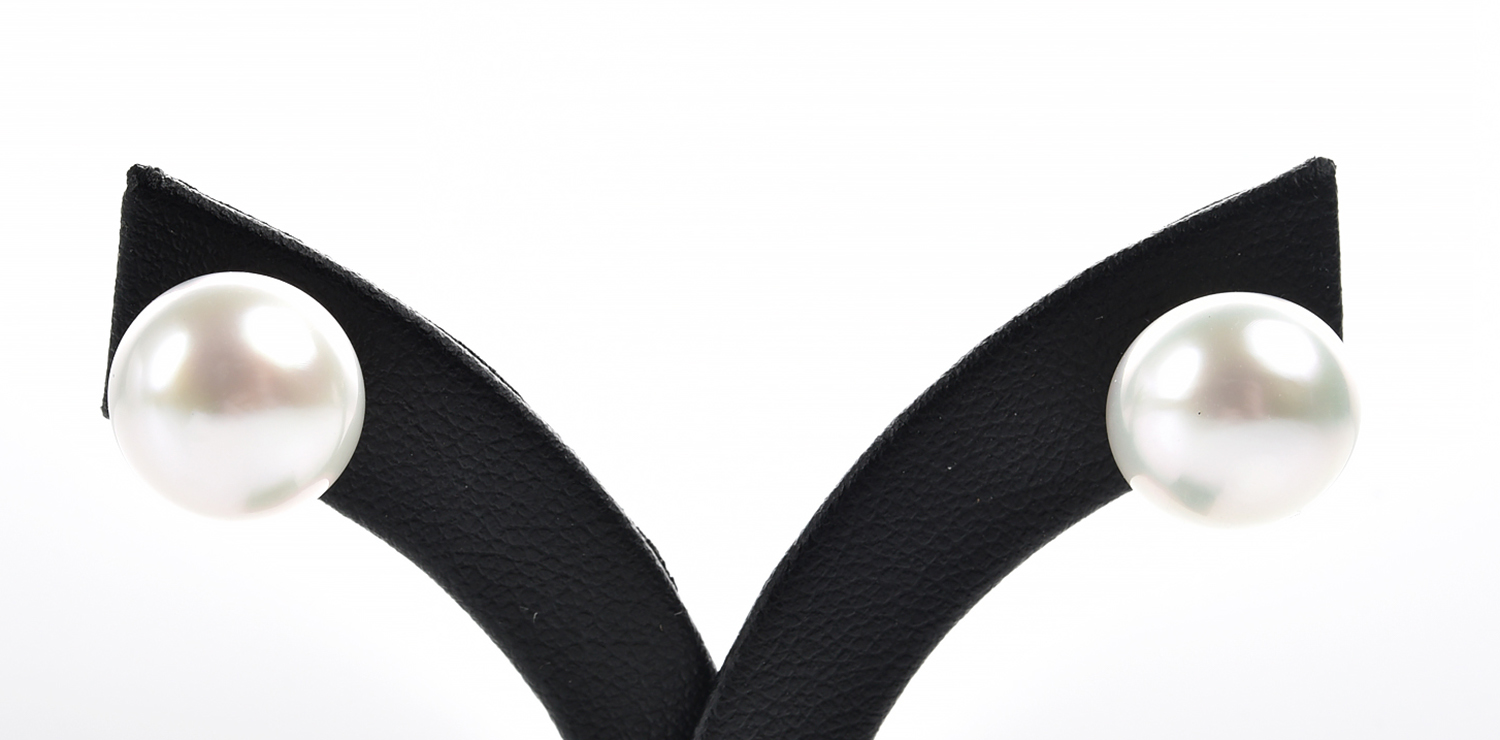 A PAIR OF SOUTH SEA PEARL EARRINGS MEASURING 11.7MM TO POST AND BUTTERFLY FITTINGS IN 9CT GOLD