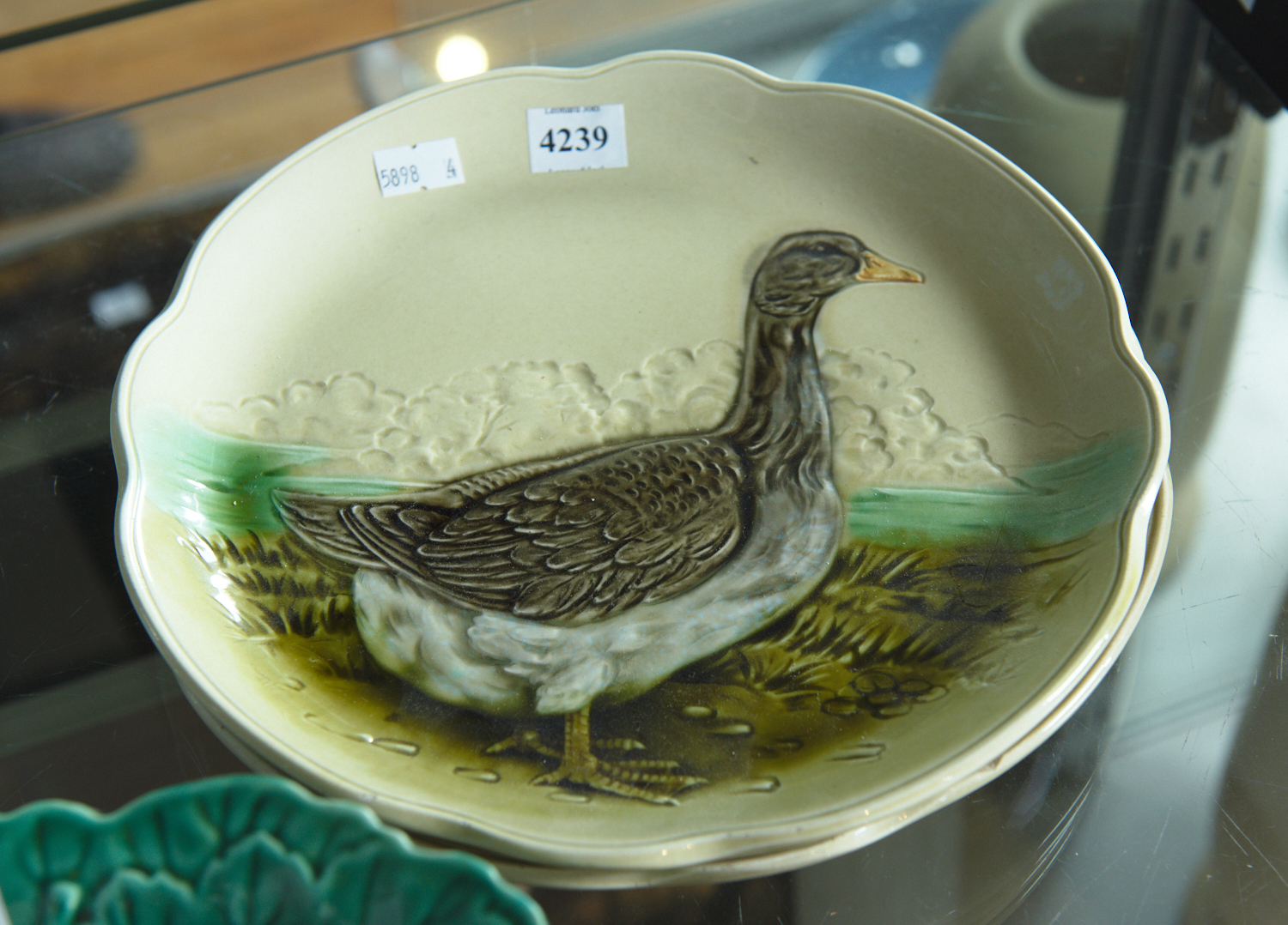 TWO MAJOLICA PLATES, DEPICTING A GOOSE AND A DUCK