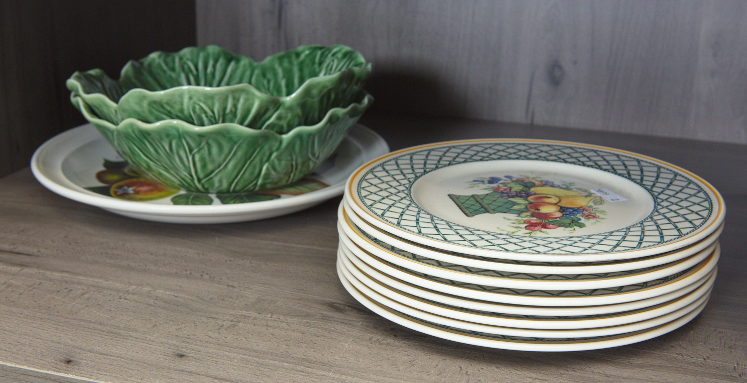 VILLEROY & BOCH PLATES, A PORTMEIRION WARE PLATE AND TWO CABBAGE BOWLS