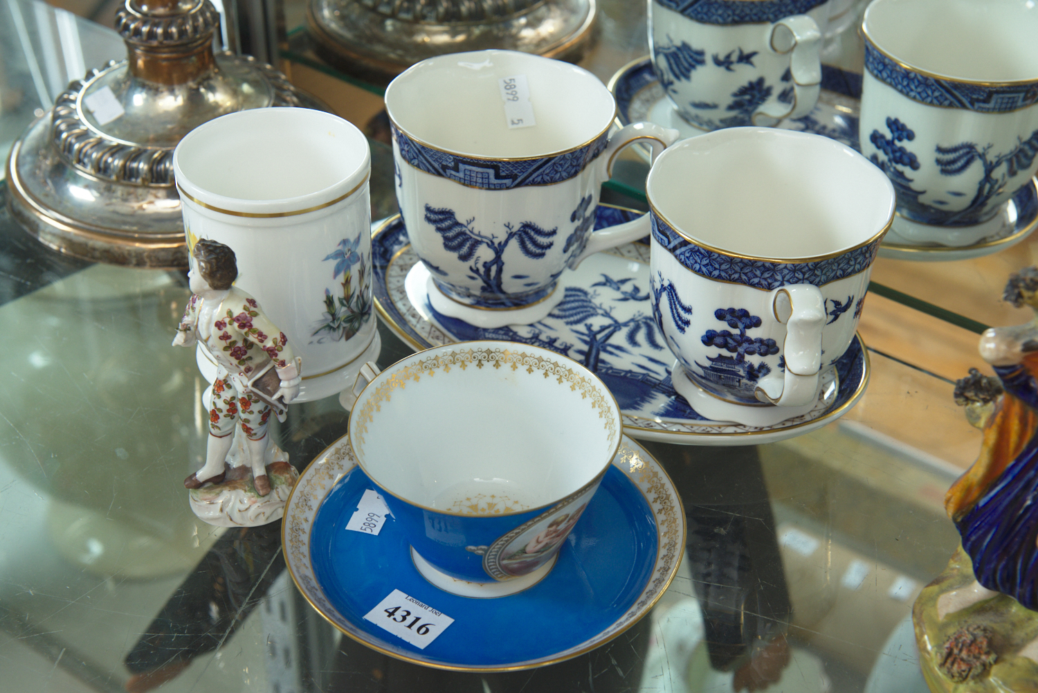 ASSORTED PORCELAIN INCLUDING A ROYAL WORCESTER VASE, TWO ROYAL DOULTON 'BOOTHS OLD WILLOW' CUPS AND OTHER