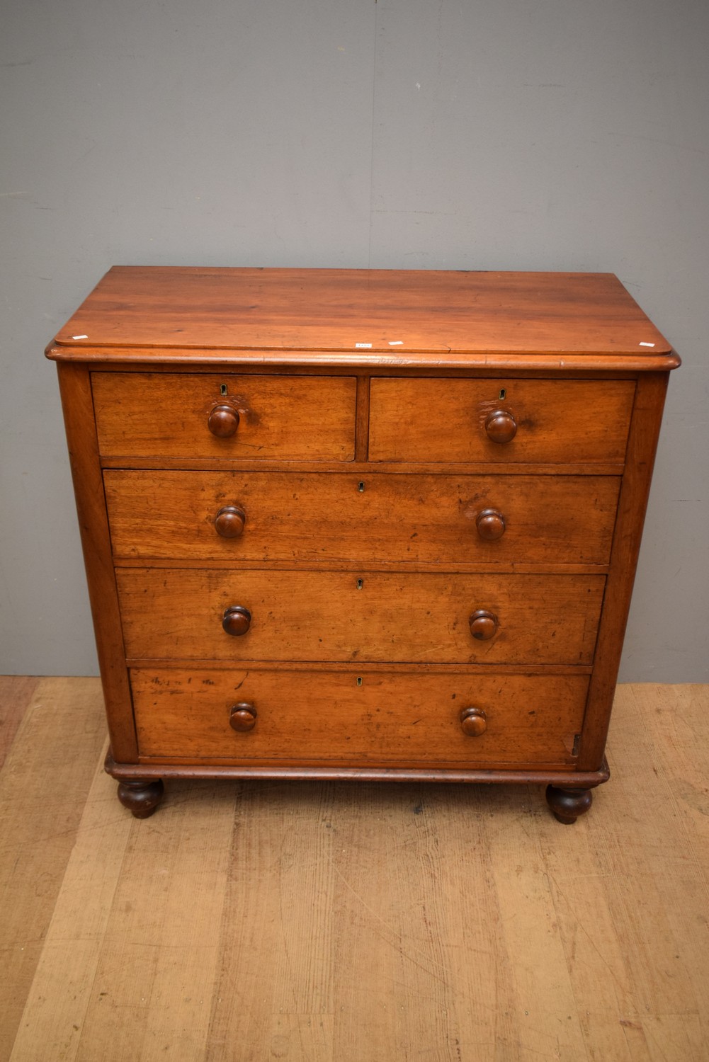 A VICTORIAN FULL CEDAR FIVE DRAWER CHEST (A/F) (106H X 104W X 48D CM)