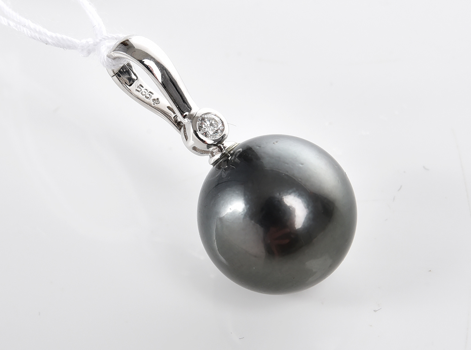 A TAHITIAN PEARL PENDANT ENHANCER, TO A HINGED BAIL IN 14CT GOLD, THE PEARL MEASURING 14.8MM, LENGTH 30MM
