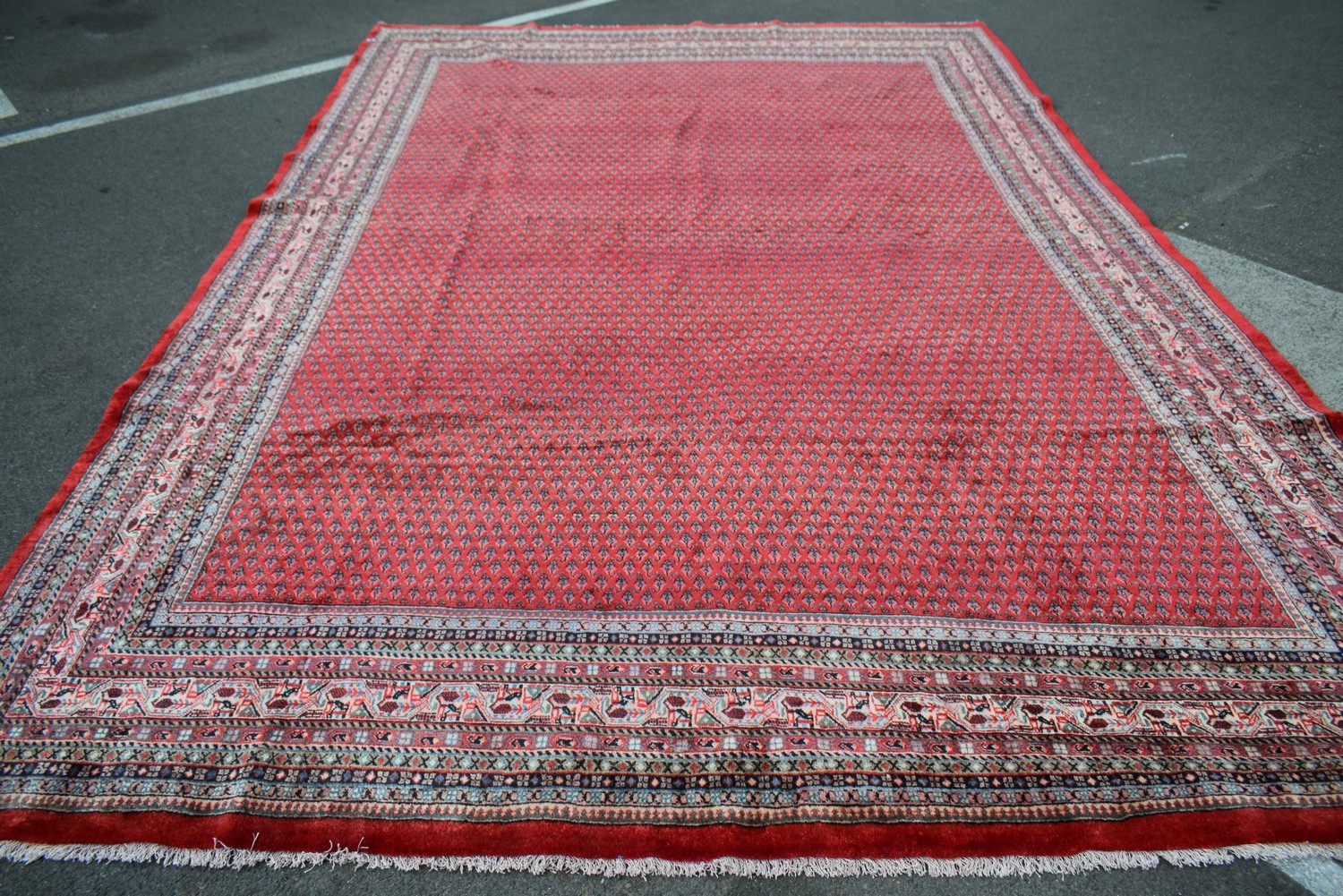 A LARGE EX-GALLERY SAROUK HANDMADE RUG IN WOOL (434 X 298 CM) (X/LARGE ITEM)