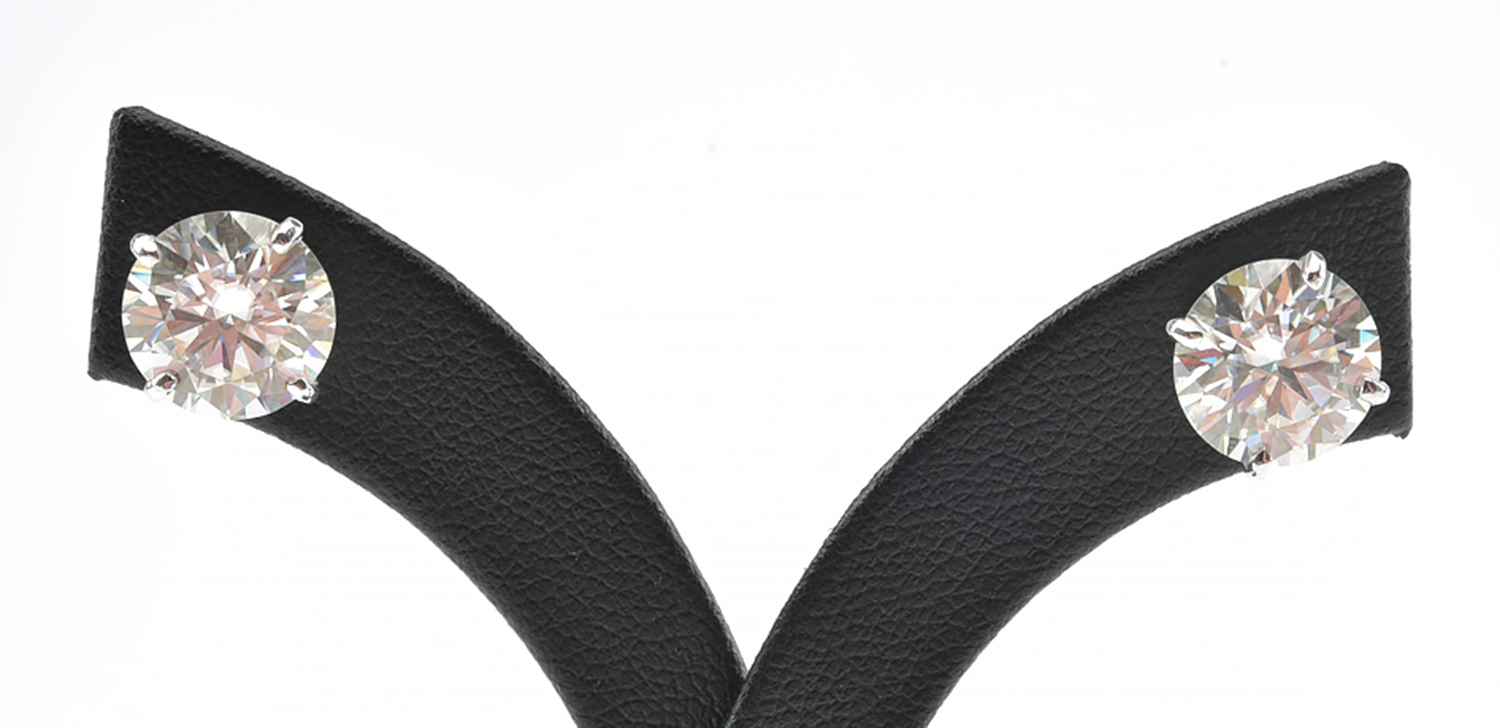 A PAIR OF MOISSANITE STUD EARRINGS TOTALLING 5.20CTS, TO POST AND BUTTERFLY FITTINGS, IN 18CT WHITE GOLD,