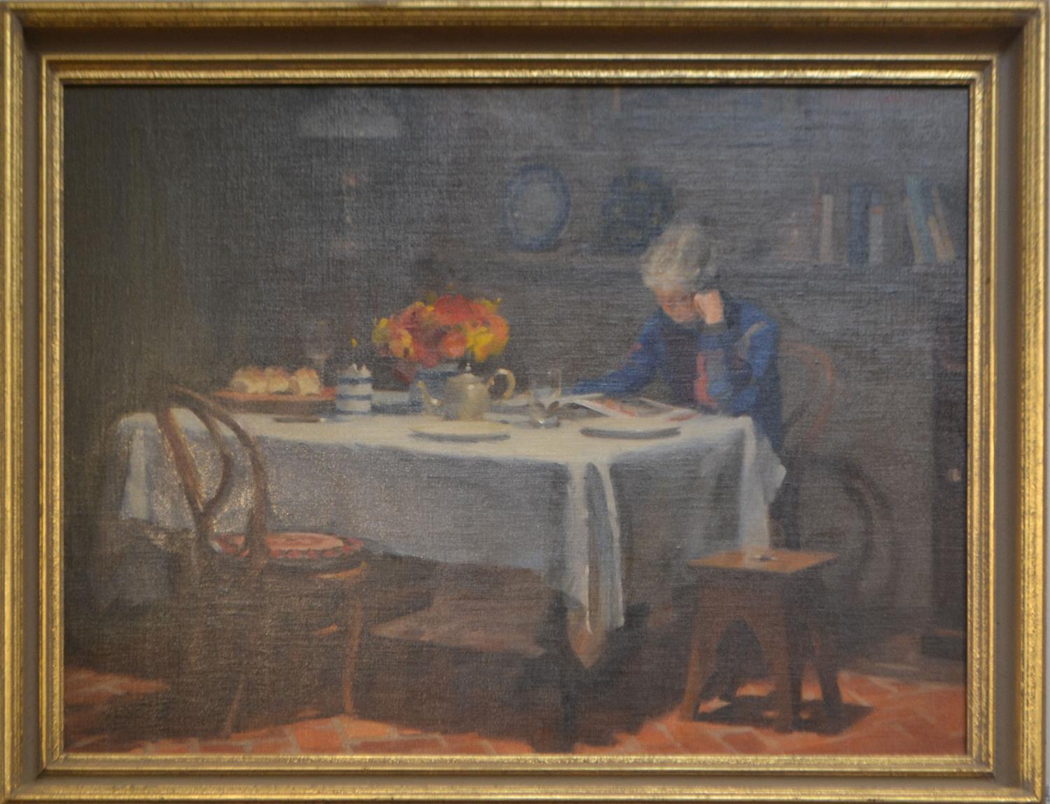 HILARY JACKMAN, THE TABLE 1984, OIL ON CANVASBOARD, 73 X 98CM, FRAME SIZE: 87 X 114CM, CONDITION: VERY GOOD