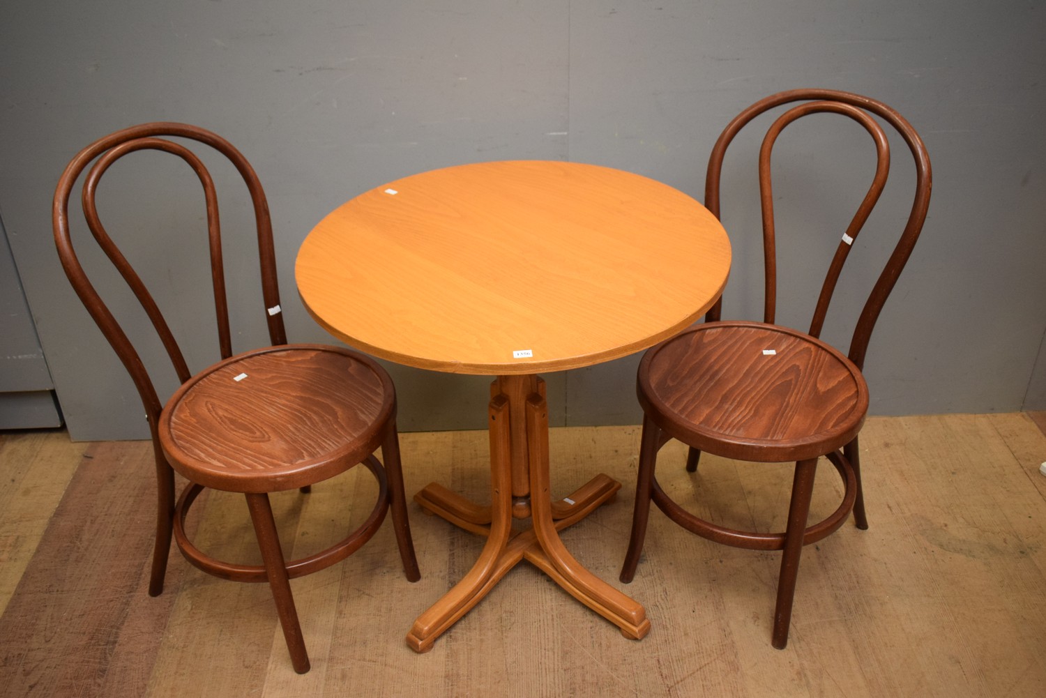 A THREE PIECE BENTWOOD CAFE SETTING (NOT MATCHING) (TABLE 74H X 70D CM)