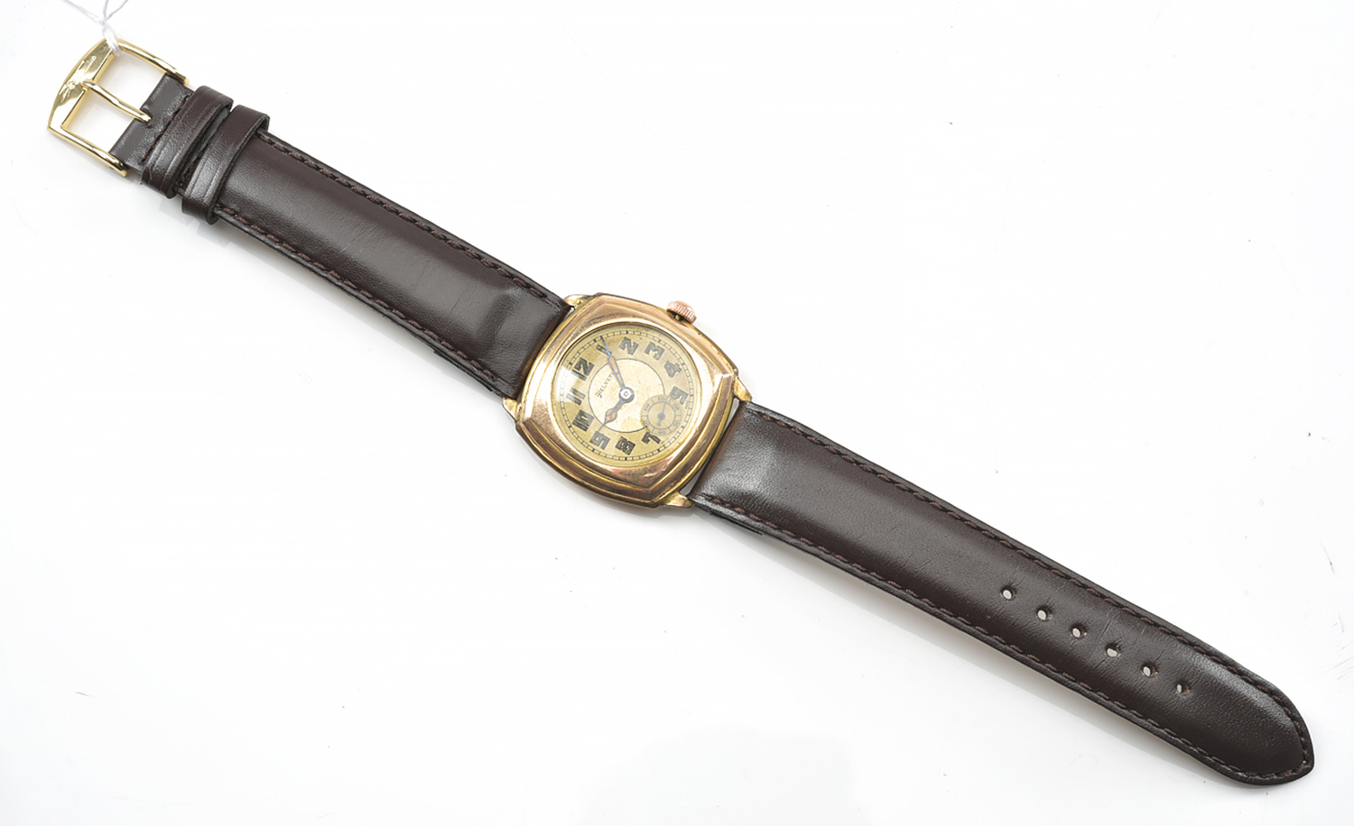 A VINTAGE MANUAL WIND HELVETIA WRISTWATCH TO GOLD FILLED CASE AND BROWN LEATHER BANDS
