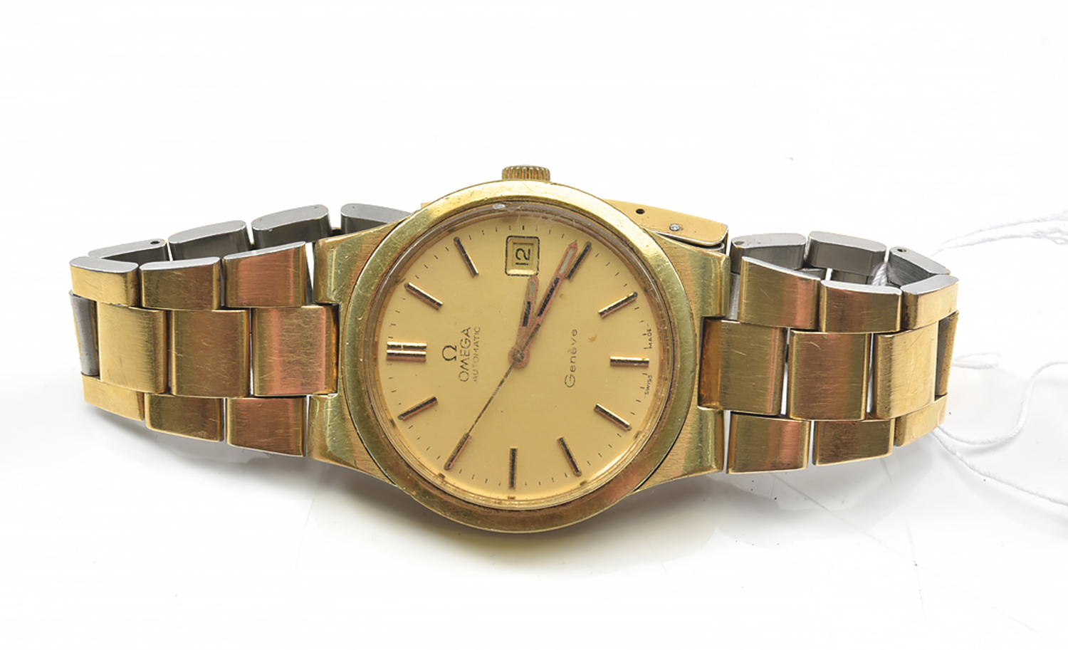 A VINTAGE OMEGA AUTOMATIC WRISTWATCH TO GOLD PLATED CASE AND BANDS