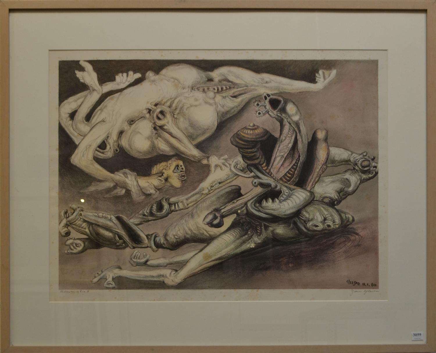 JAMES GLEESON, THE CREATION OF EVE II, LITHOGRAPH, 50 X 69CM, FRAME SIZE: 77.5 X 95CM, CONDITION: FOXING THROUGHOUT