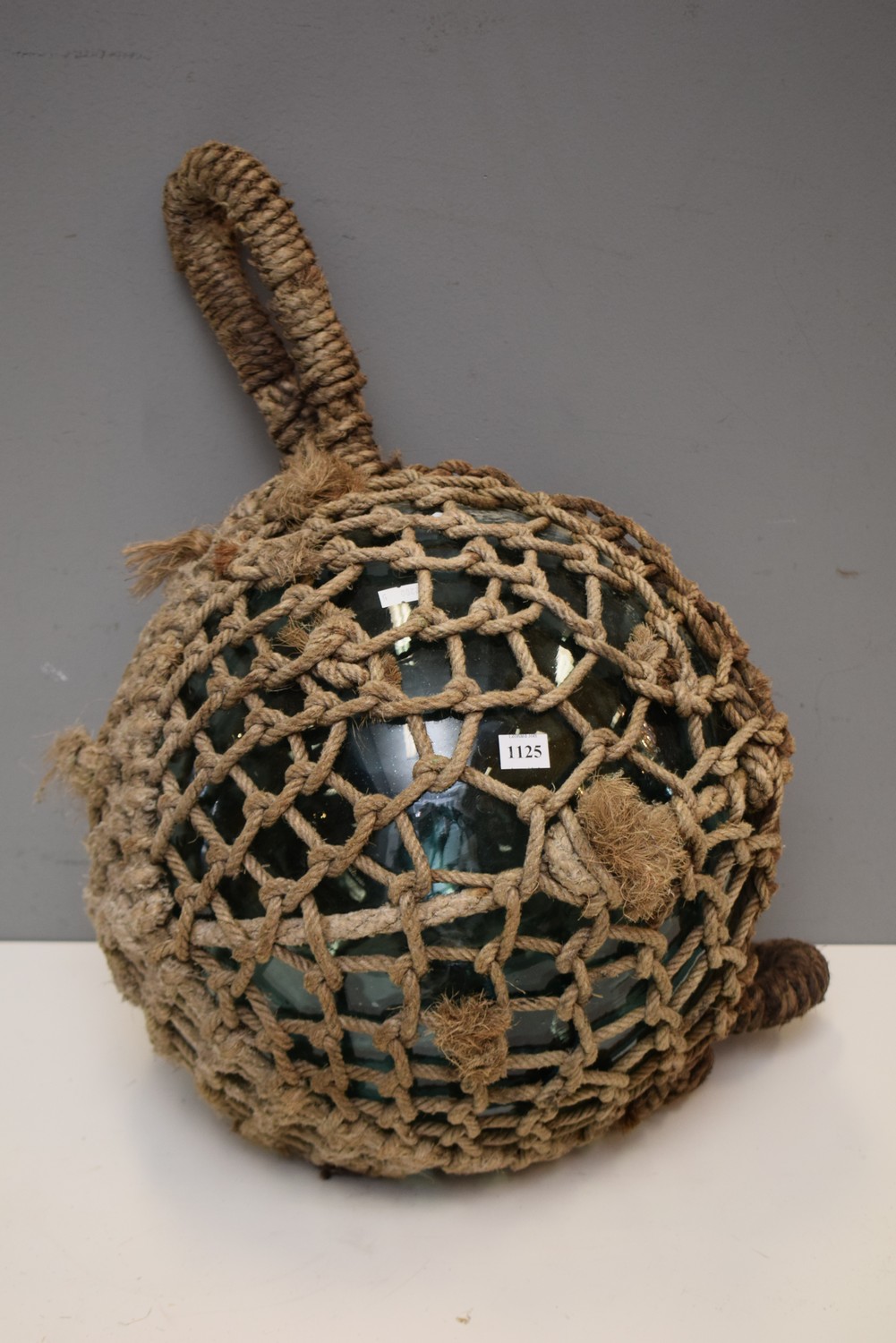A LARGE 1920S NATURAL FIBRE COVERED GLASS SHIP/FISHING BUOY (APPROX DIAMETER 42CM)