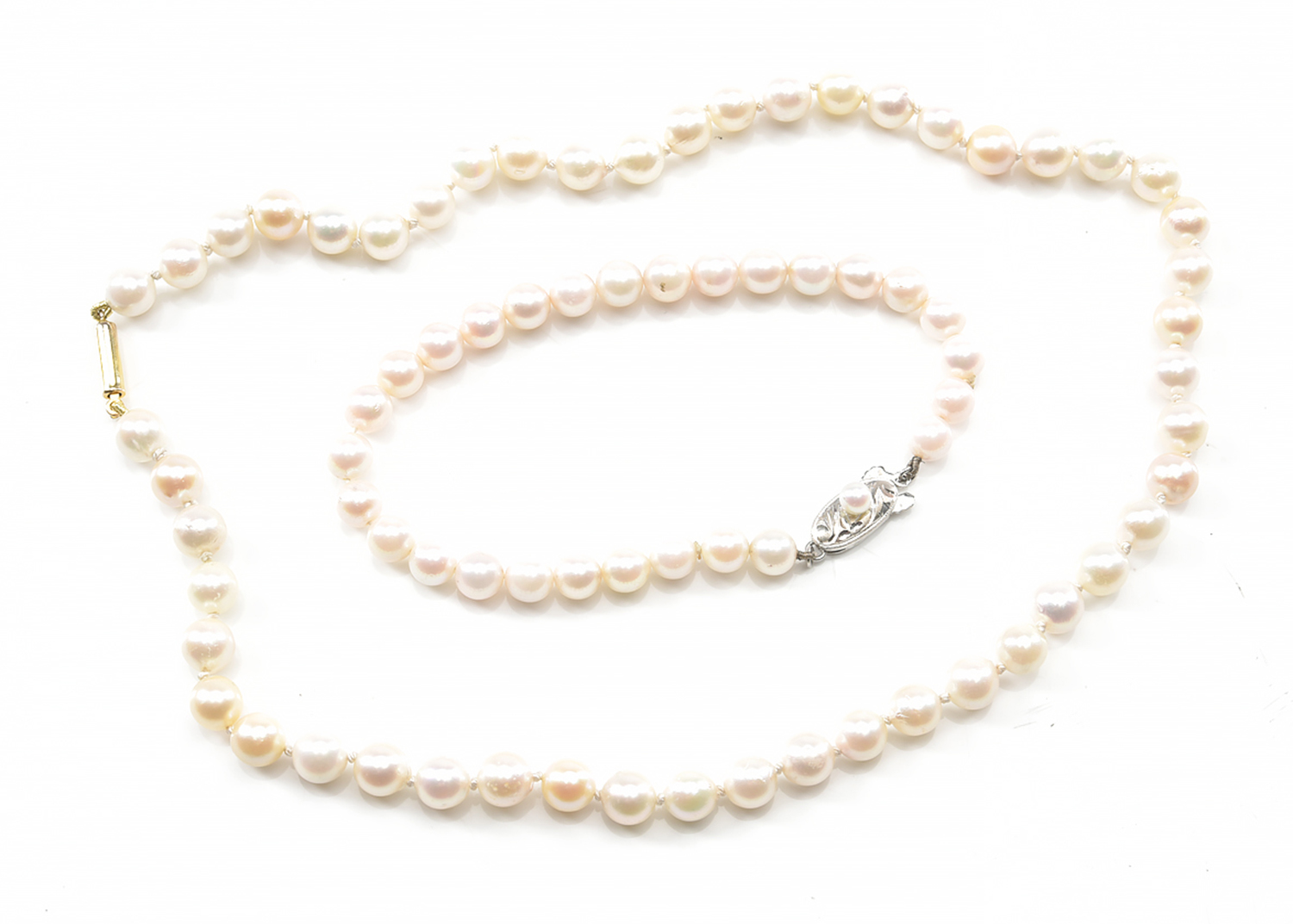 A STRAND OF AKOYA PEARLS, TOGETHER WITH AN AKOYA PEARL BRACELET