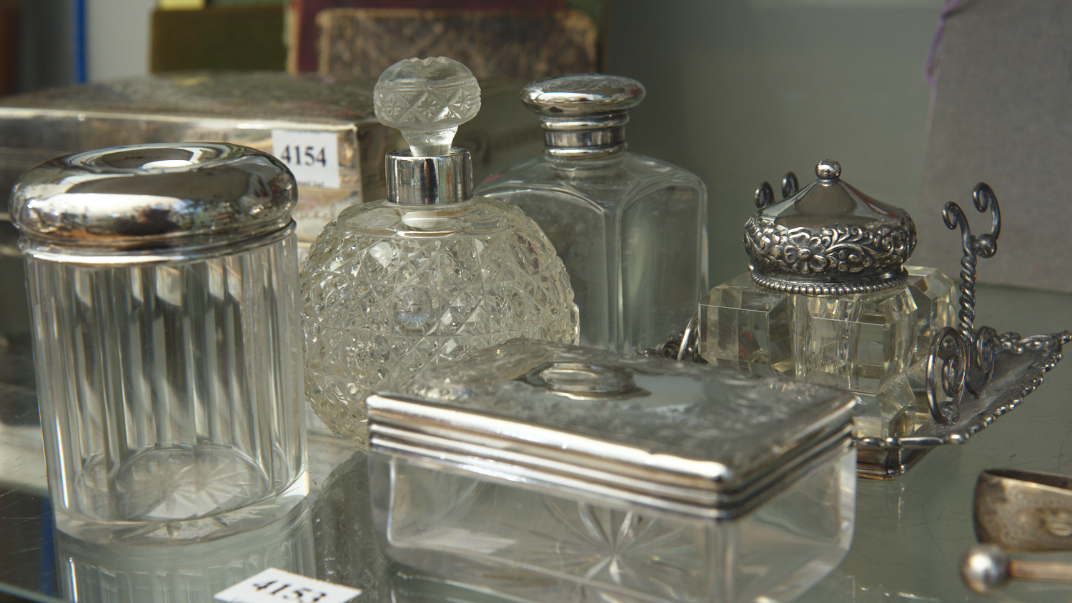 A COLLECTION OF FIVE STERLING SILVER COLLARED VESSELS