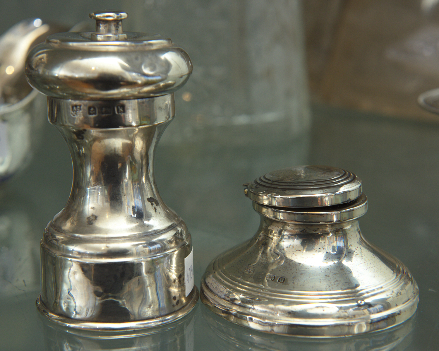 STERLING SILVER INKWELL TOGETHER WITH PEPPER MILL