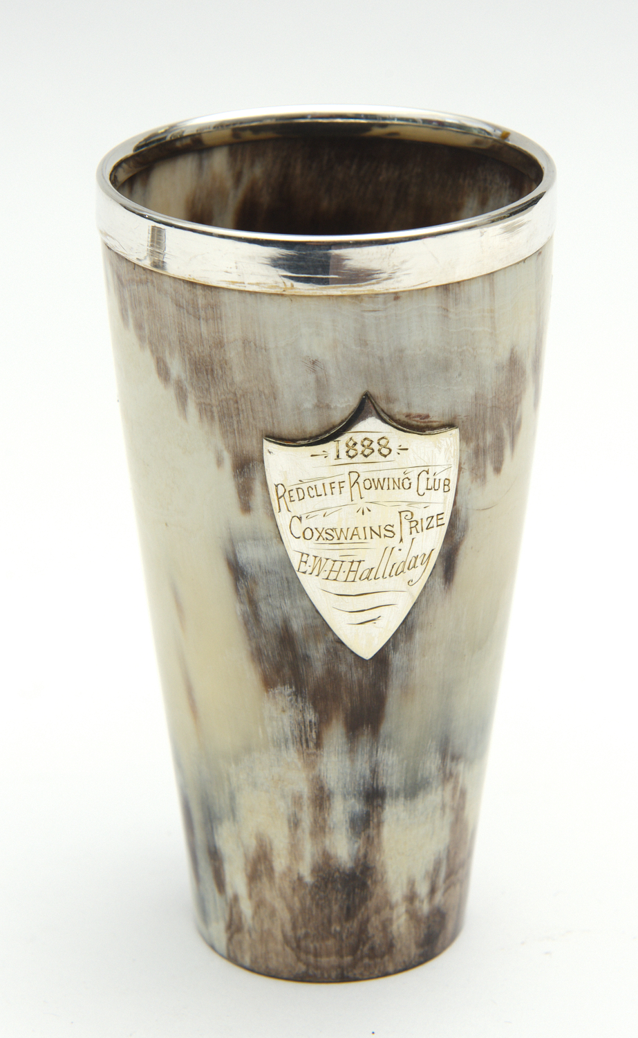 AN 1888 HORN AND SILVER HUNTING BEAKER - REDCLIFF ROWING CLUB COXSWAINS PRIZE