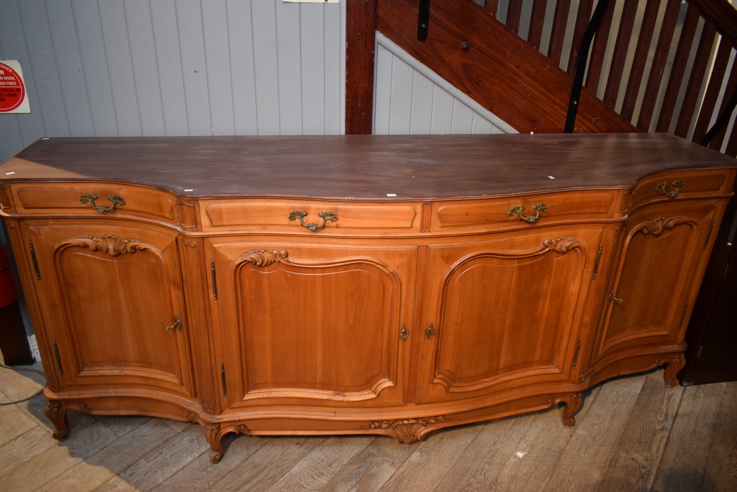 A 19TH CENTURY FRENCH PROVINCIAL CHERRYWOOD BUFFET (101H X 254W X 73D CM)