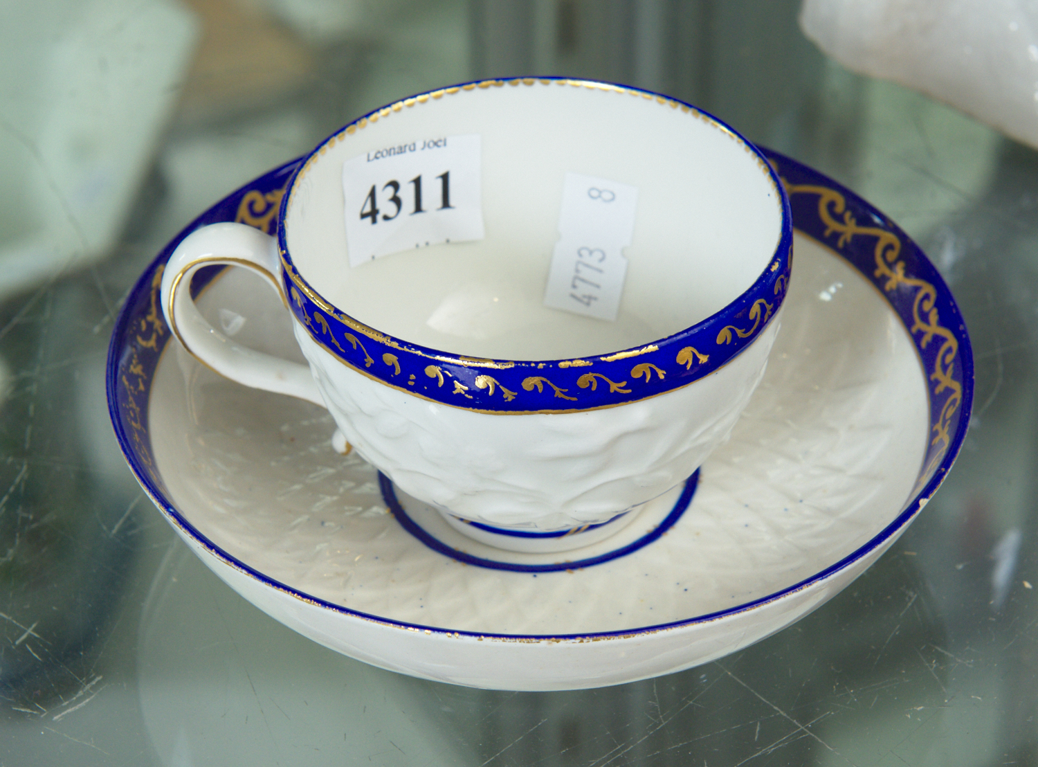 A CHELSEA DERBY TEA CUP AND SAUCER C 1774 (CHIP TO SAUCER)