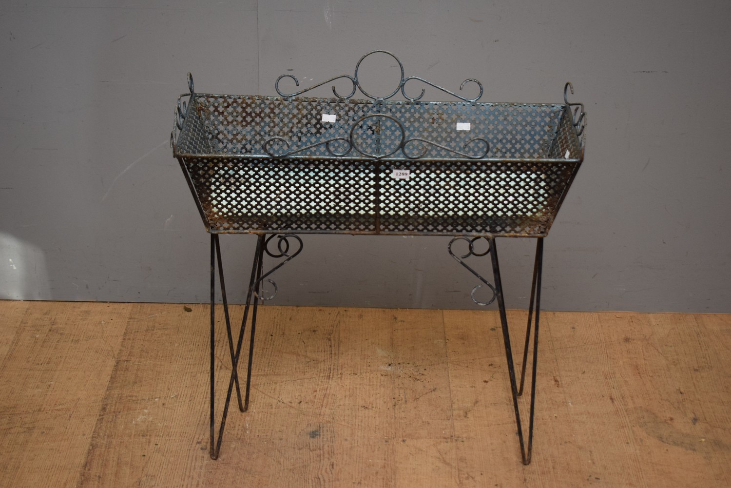 A WROUGHT IRON PLANT STAND (68H X 64W X 26D CM)