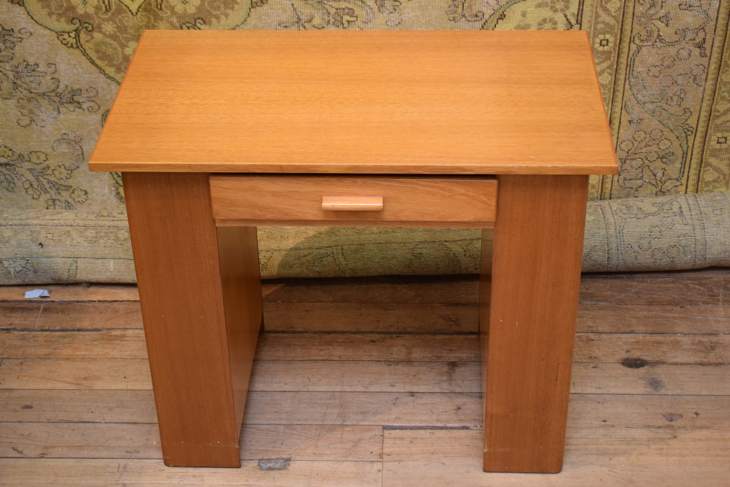 A MID-CENTURY STYLE BLONDEWOOD WRITING DESK (76H X 92W X 54D CM)