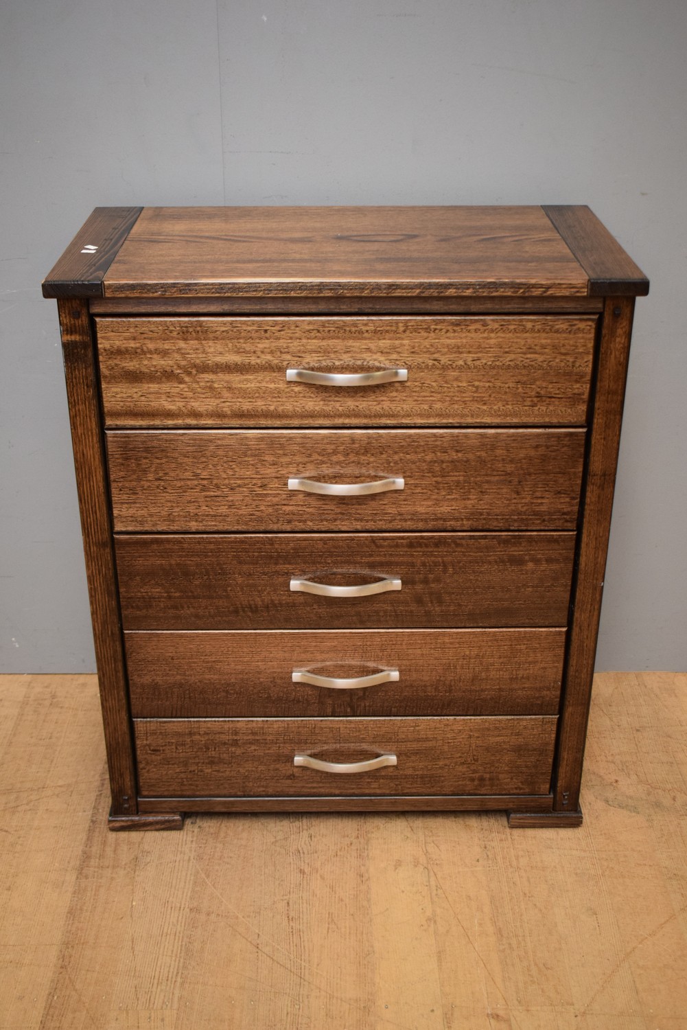 A CONTEMPORARY TIMBER FIVE DRAWER CHEST (108H X 91W X 48D CM)