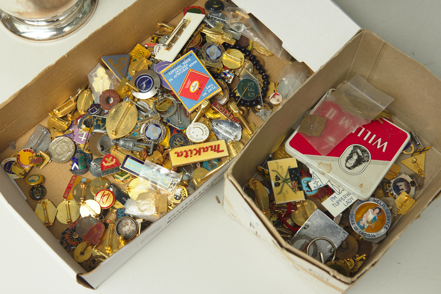 TWO BOXES OF ASSORTED BADGES