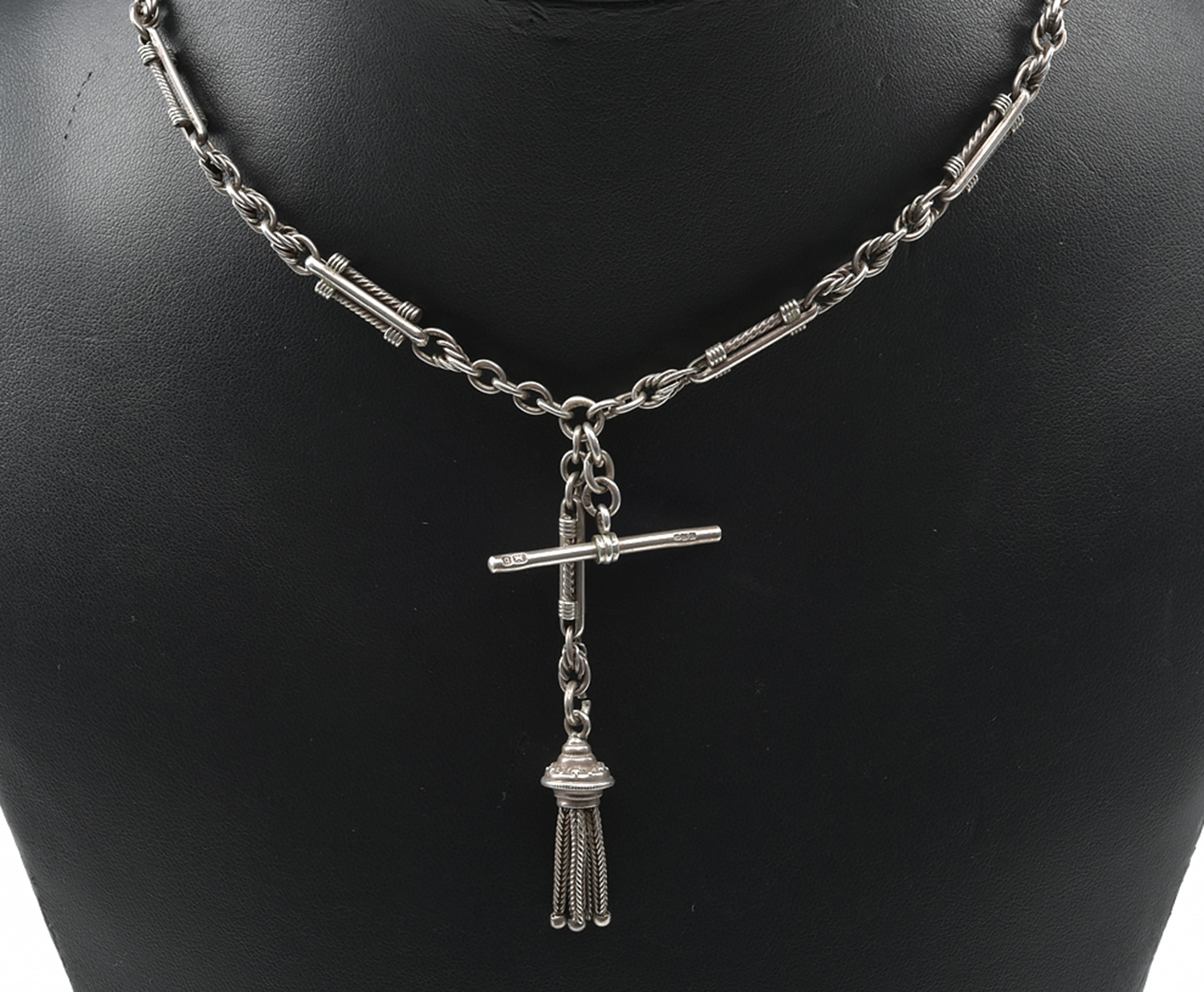 AN ALBERTINA CHAIN WITH TASSLE IN SILVER, TOTAL LENGTH 400MM