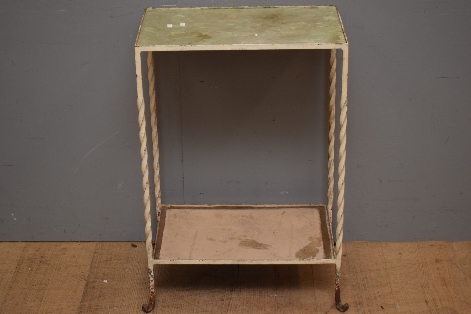 A METAL TWO TIER PLANT STAND (A/F) (75H X 51W X 31D CM)