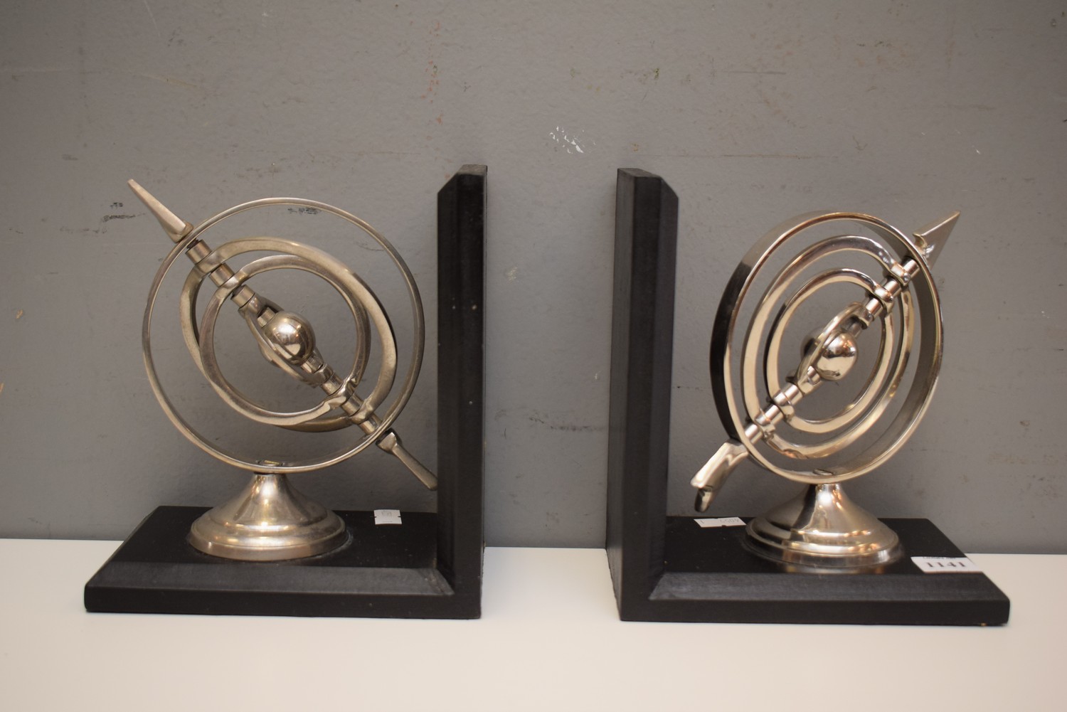 A PAIR OF TIMBER AND CHROME BOOKENDS (18H X 16W X 10D CM) (A/F)