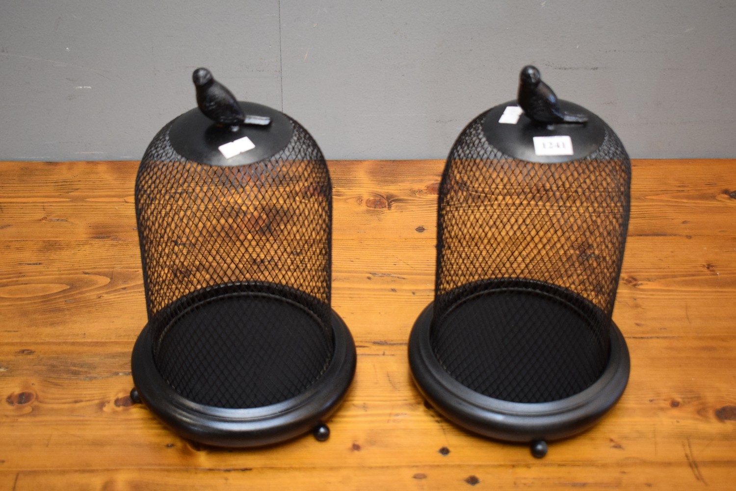 A PAIR OF METAL CANDLE HOLDERS WITH BIRD DETAILING (32 CM H)