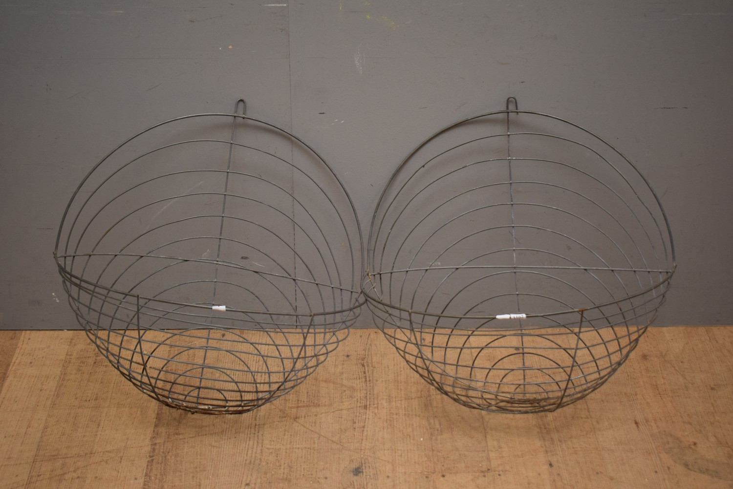A PAIR OF LARGE WIRE PLANT HOLDERS (53 CM H)