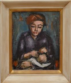 § ROBERT GRIEVE, MOTHER AND CHILD, OIL ON CANVAS, 35 X 30CM, FRAME SIZE: 55 X 44CM, CONDITION: VERY GOOD, WELL FRAMED,