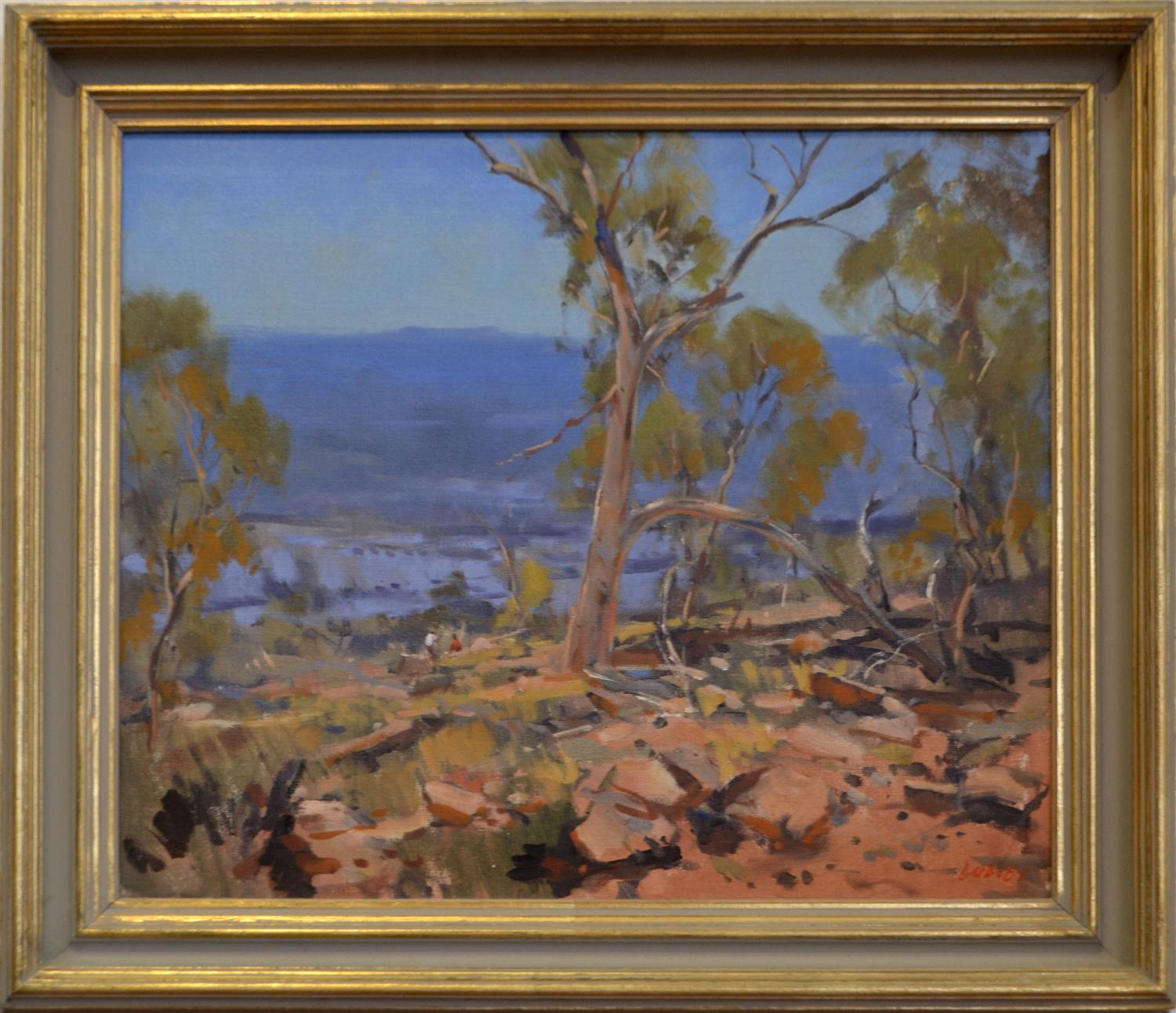 JOHN DUDLEY, FIGURES IN LANDSCAPE, OIL ON CANVASBOARD, 49 X 59CM, FRAME SIZE: 64 X 75CM, CONDITION: VERY GOOD, WELL FRAMED