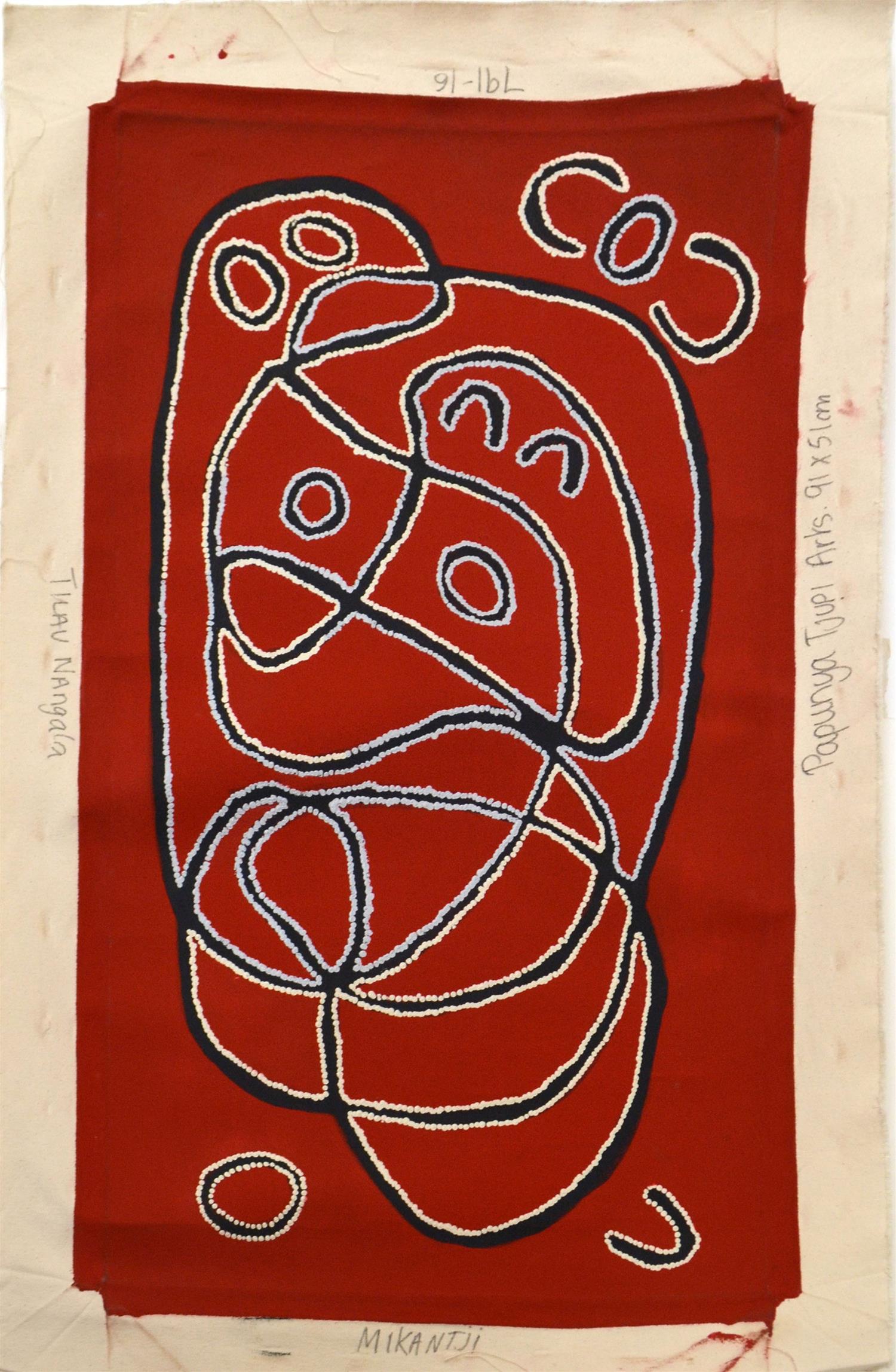 TILAU NANGALA, MIKANTJI, ACRYLIC ON CANVAS, PAPUNYA TJUPI CAT NO VERSO: 791-16, 91 X 51CM (UNSTRECTHED)
