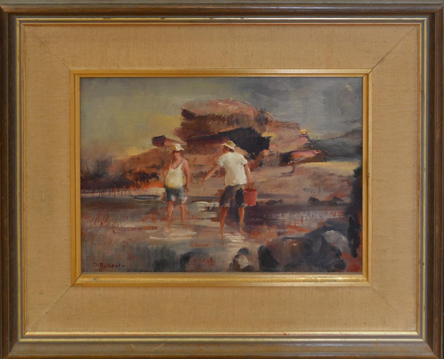 OTTO BORON, BEACH ACTIVITY, OIL ON CANVASBOARD, 23.5 X 33.5CM, FRAME SIZE: 43 X 53CM, CONDITION: VERY GOOD, LEONARD JOEL DELIVERY SIZE: SMALL