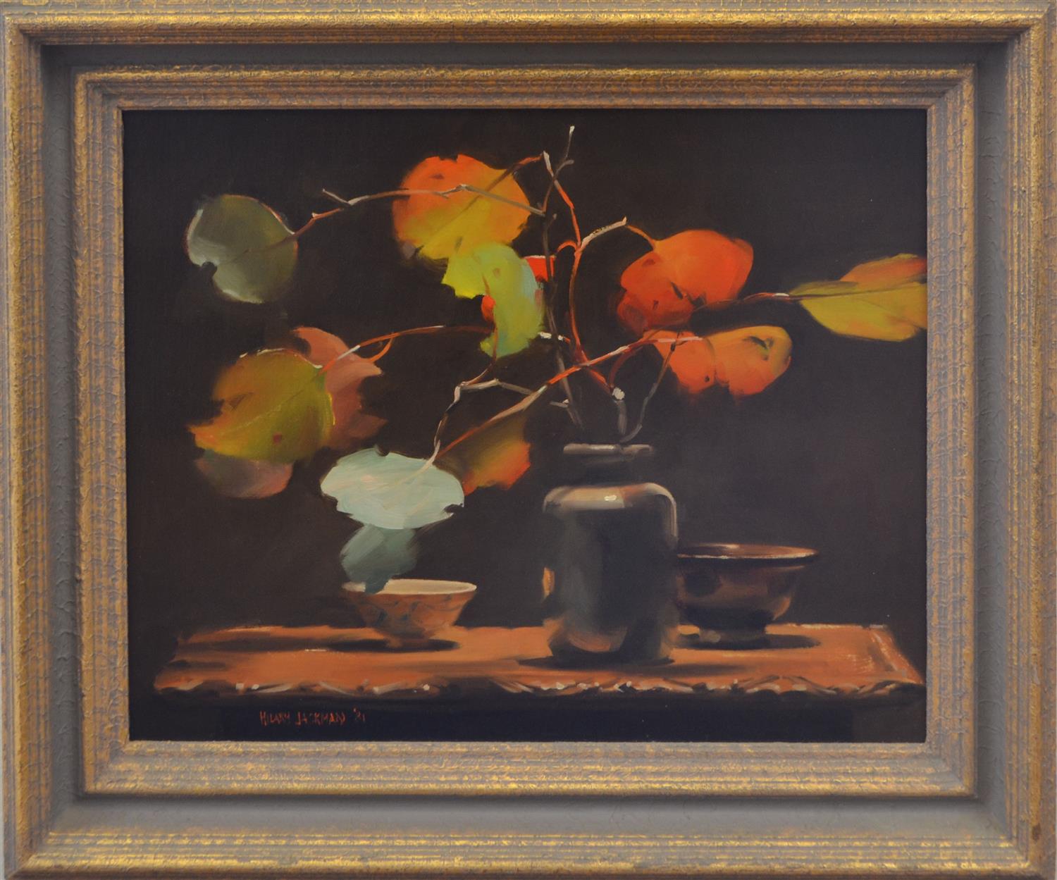 HILARY JACKMAN, SENESCENCE, OIL ON CANVASBOARD, 39 X 49CM, FRAME SIZE: 55 X 64CM, CONDITION: VERY GOOD