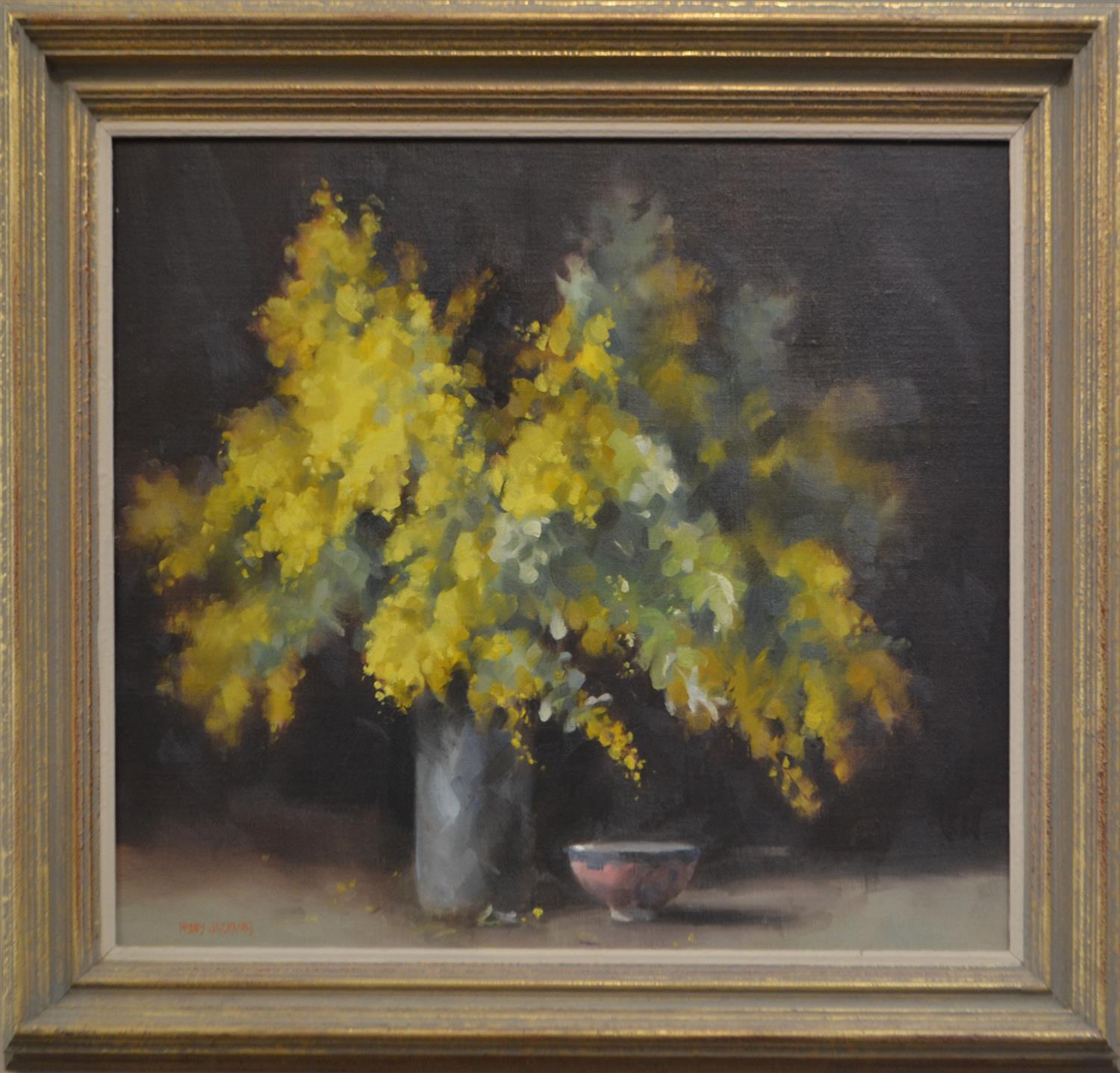 HILARY JACKMAN, WATTLE, OIL ON CANVASBOARD, 49 X 59CM, FRAME SIZE: 66 X 73CM, CONDITION: VERY GOOD