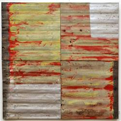 INGO KLEINERT, KING OF FIRE 2002, ACRYLIC ON TIN, 100 X 100CM, NO ADDITIONAL FRAMING, CONDITION: CONDITION INTEGRAL TO THE FOUND MATIERAL USED AS THE MEDIUM. LEONARD DELIVERY SIZE: LARGE