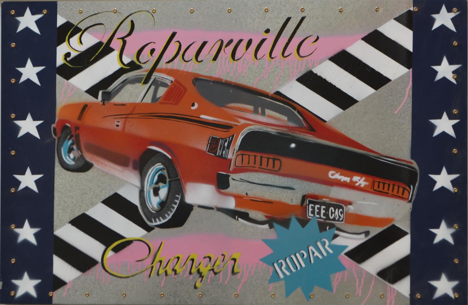 DENNIS ROPAR, ROPARVILLE, AEROSOL ON METAL, SIGNED VERSO, 80 X 122CM, NO FRAME, CONDITION: INTEGRAL TO MEDIUM