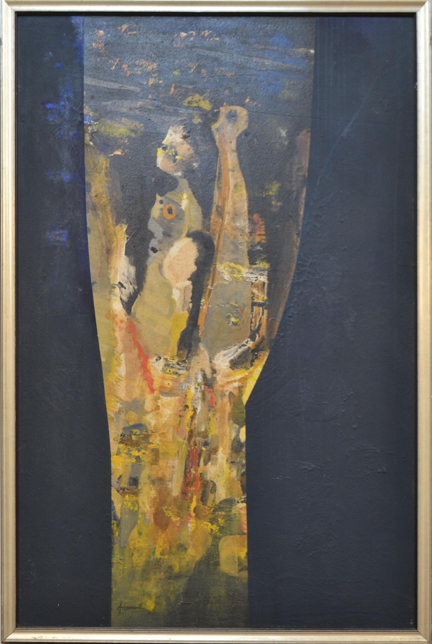 VERDA ARROWSMITH, REFUGEES, OIL ON BOARD, 137 X 91CM, FRAME SIZE: 143 X 98CM, CONDITION: GOOD OVERALL, SOME LOSSES AND DUST ON SURFACE