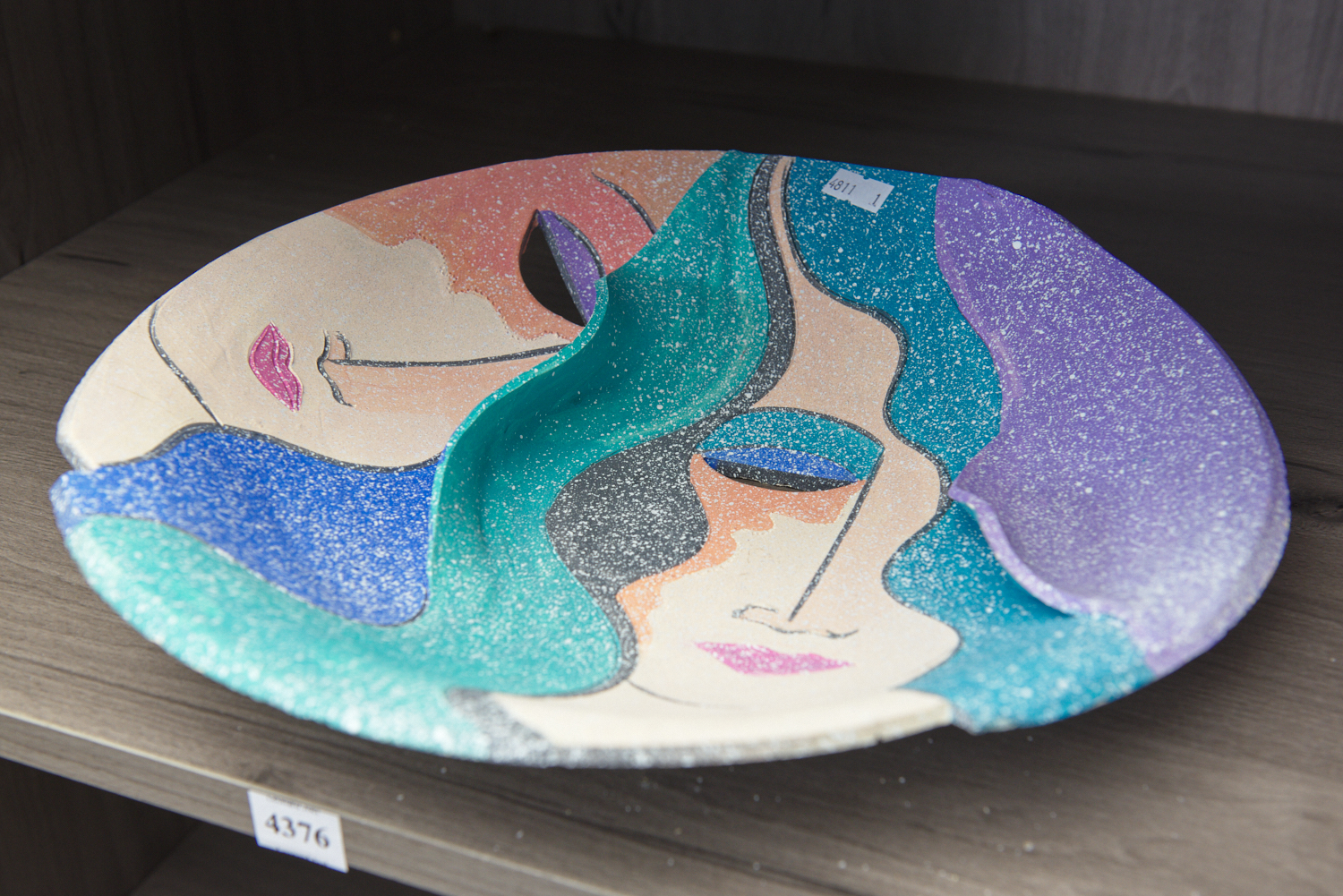 HIROE SWEN, RECTANGULAR VASE, STEEL MATT GLAZE AND OVERLAY DECORATIONS, H.20CM W.29CM