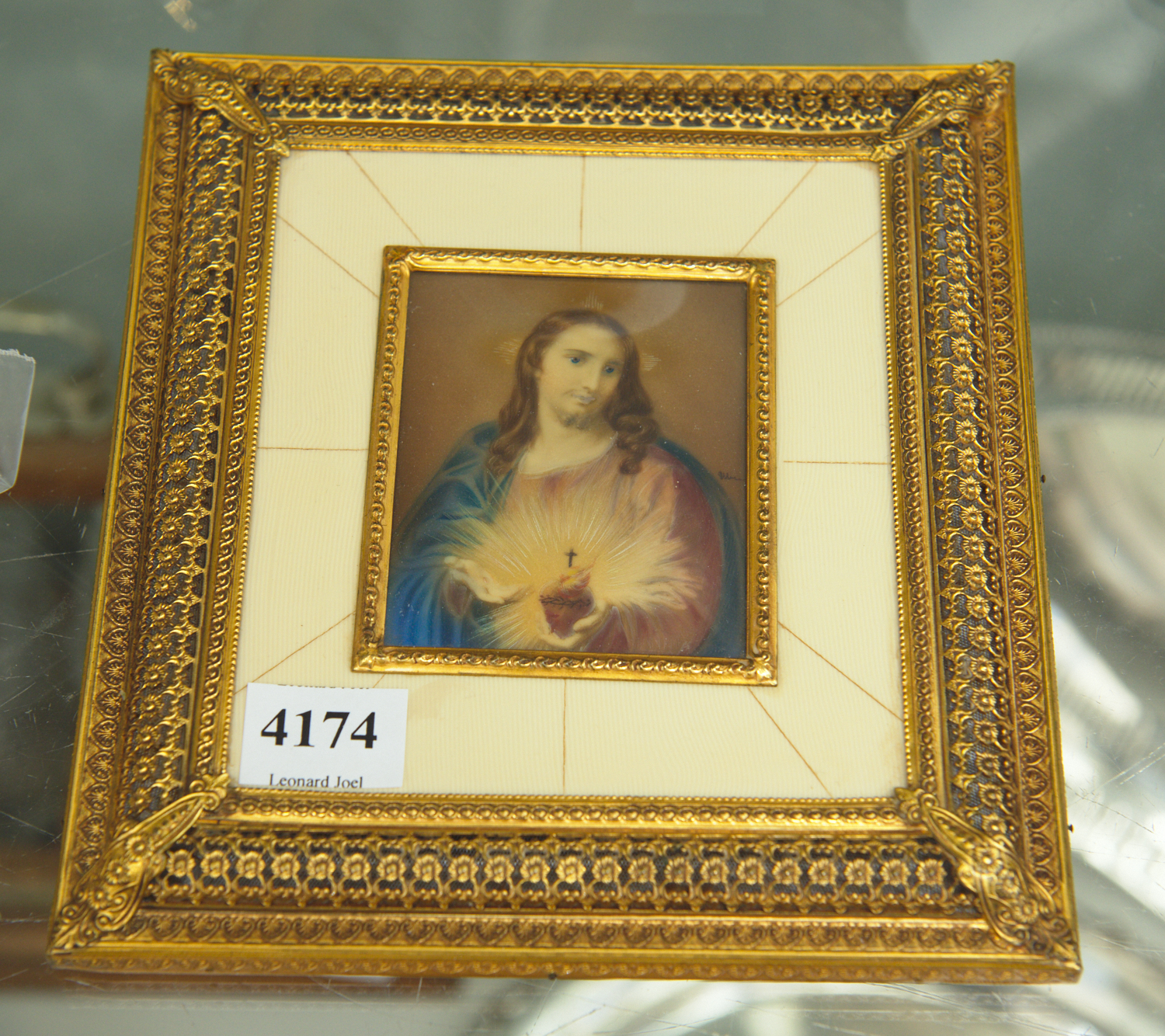 AN IVORINE PORTRAIT MINIATURE DEPICTING CHRIST