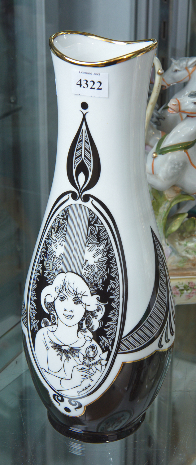 HIROE SWEN, RECTANGULAR VASE, STEEL MATT GLAZE AND OVERLAY DECORATIONS, H.20CM W.29CM