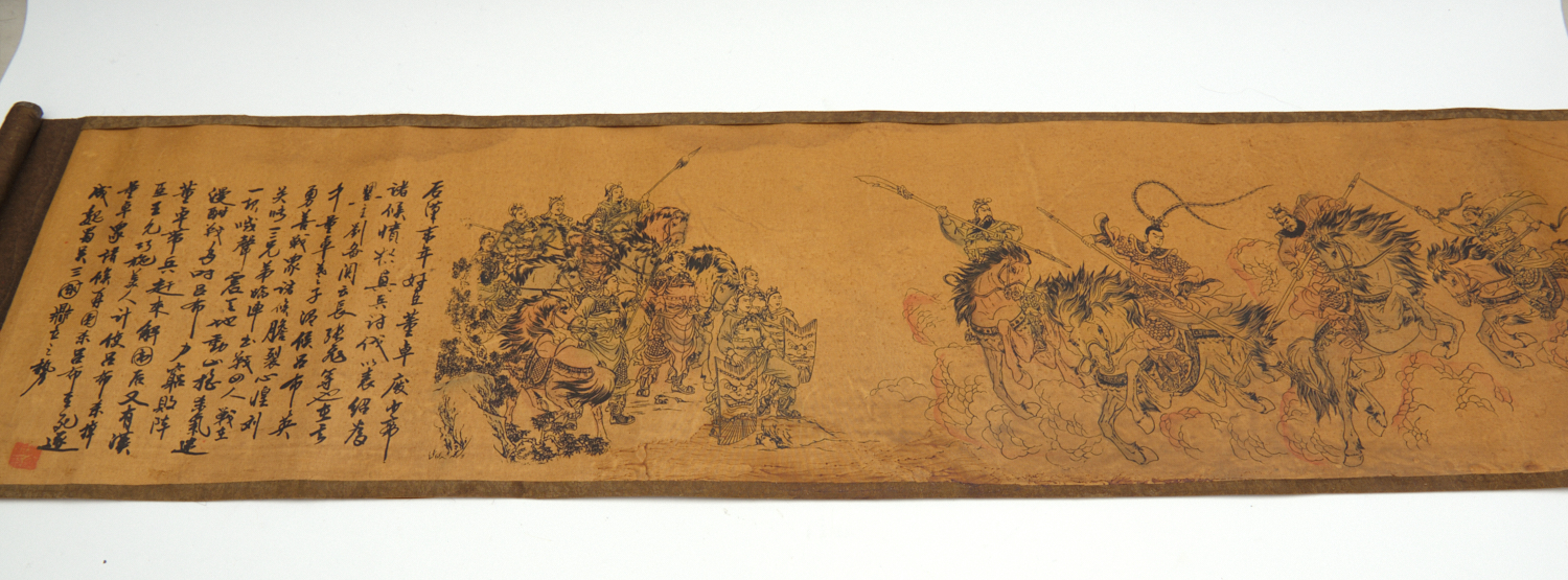 A CHINESE WATERCOLOUR ON SILK, HORSEBACK WARRIOR