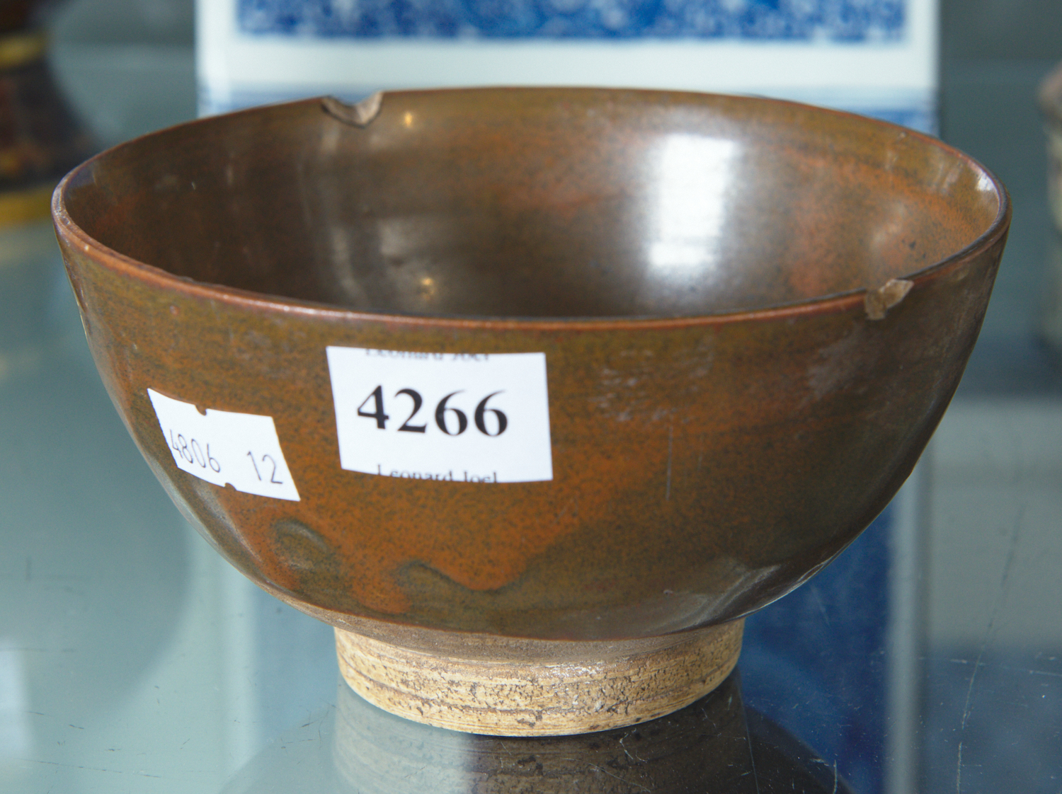 A PERSIMMON GLAZED BOWL, (CHIPS)